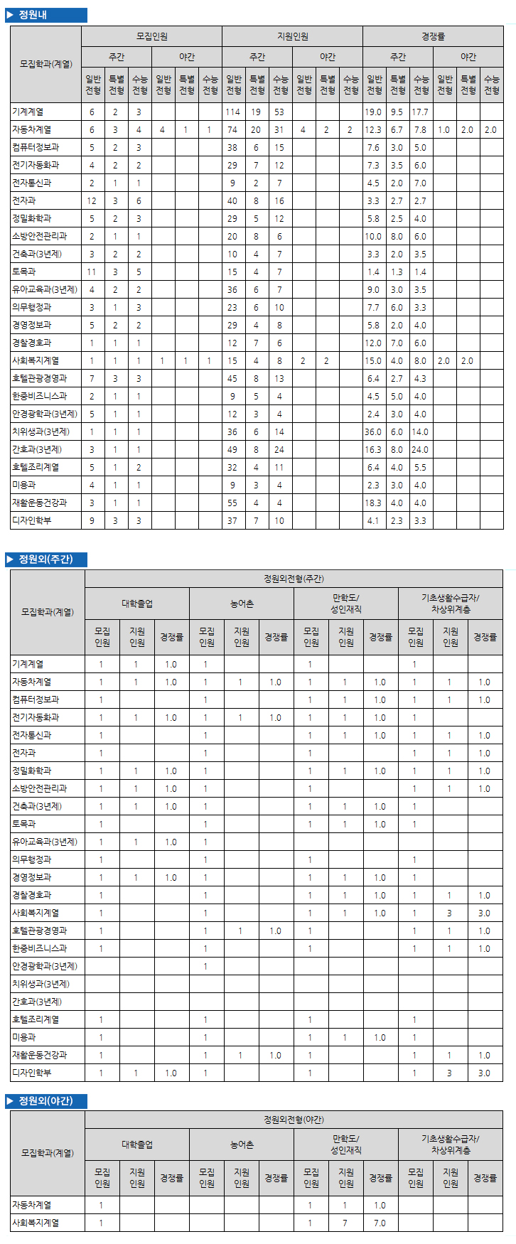 HOME > 입학도우미 > 입시경쟁률 입시경쟁률 제목 2015학년도 정시모집 지원율현황 등록일 2015.07.24 19:37:26 작성자 관리자 첨부파일 3.jpg [774.39 KB] 조회 9796 이전글 2015학년도 수시2차모집 지원율현황 다음글 2015학년도 정시2차모집 지원율현황 목록 비밀글 비밀번호 입력 폼 비밀번호 입력 비밀번호를 입력하여 주세요. 관리자는 확인버튼만 누르시면 됩니다. 비밀번호 잘못된 비밀번호입니다. 비밀번호를 다시 입력해주세요. 확인